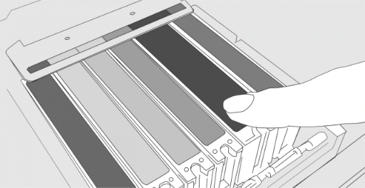 プリンターに洗浄カートリッジをセットしてください。洗浄カートリッジを使用しないカラーはそのままインクカートリッジをセットしたままにしてください。
