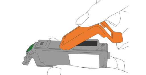 オレンジ色の保護キャップを外してください。※使用後、使い切れない場合にこのキャップを使用して6ヶ月程度、保管が可能です。