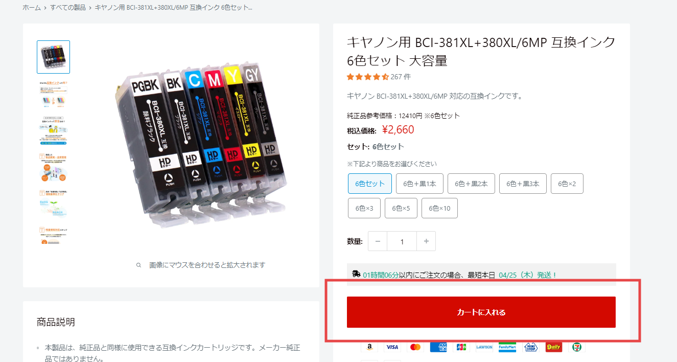 ステップ3 カートへ入れる