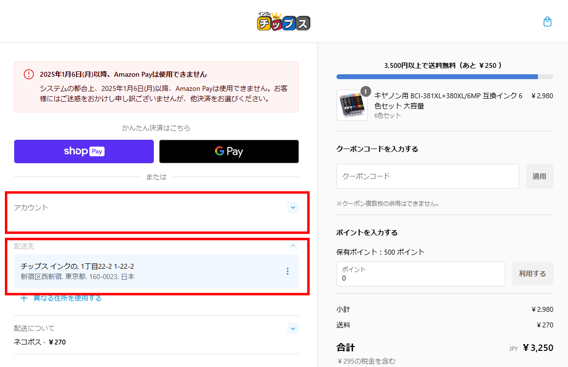 ※旧インクのチップス本店からのアカウント移行の方は、こちらから会員アカウントの有効化を行ってください