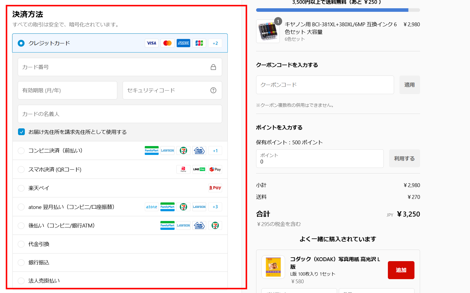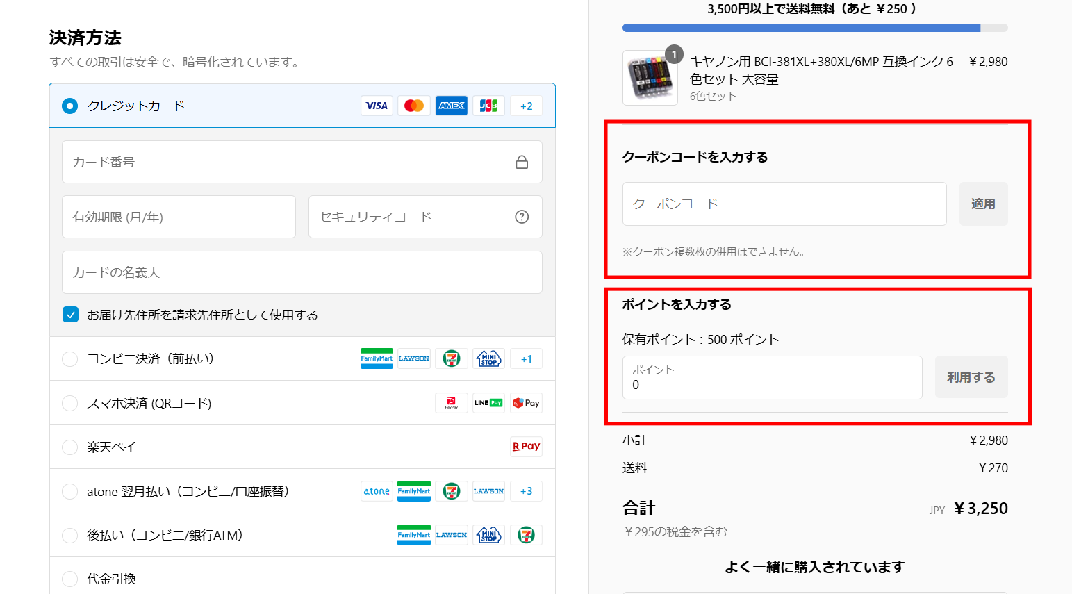 ステップ8 クーポンコード、ポイントを入力