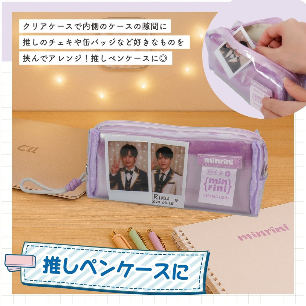 • パープル / ベージュ / ブルーの3色展開。外側がクリア仕様なので、推しの写真やカードを入れて見せる収納も楽しめます。
