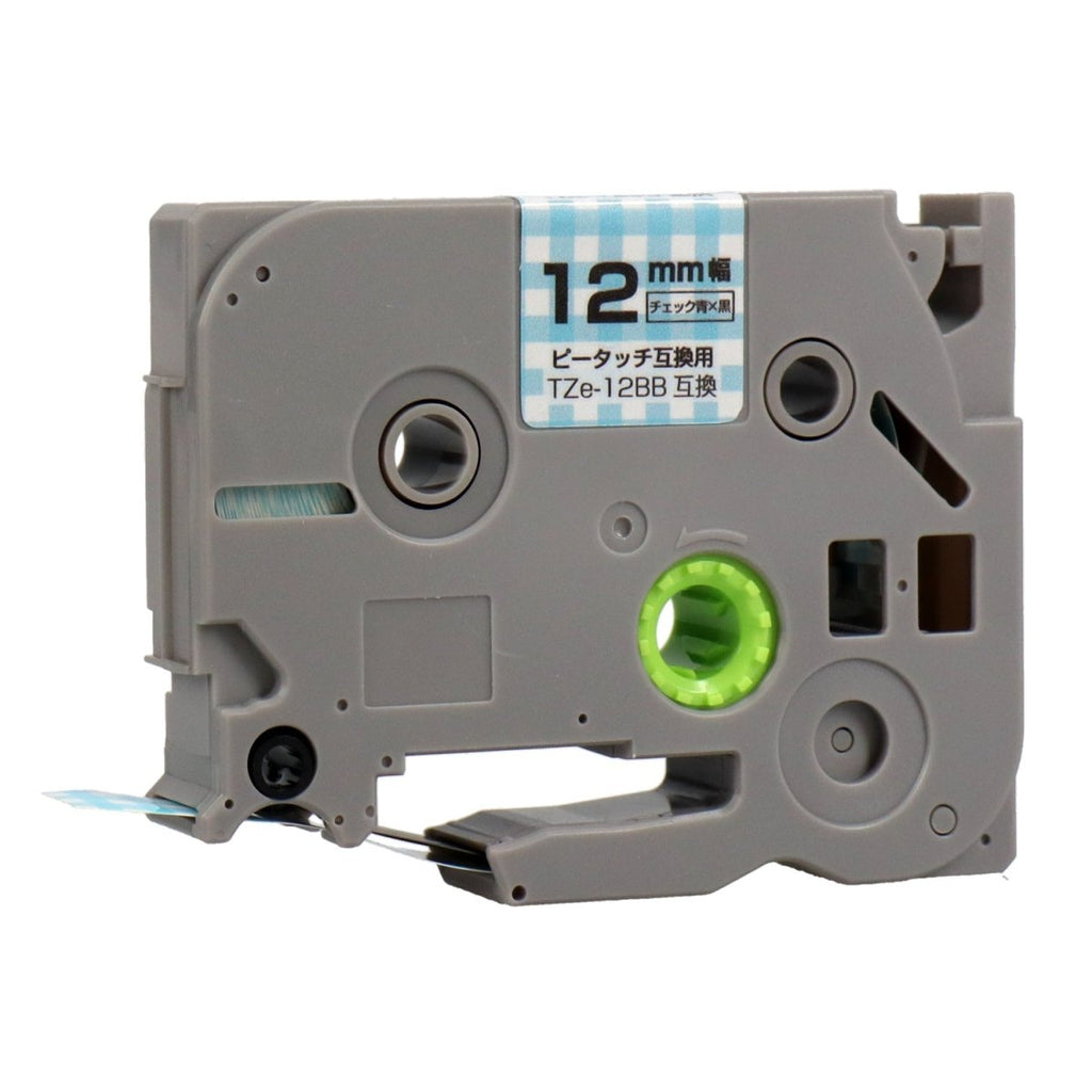ブラザー用 ピータッチ用互換テープカートリッジ チェック青×黒文字 12mm