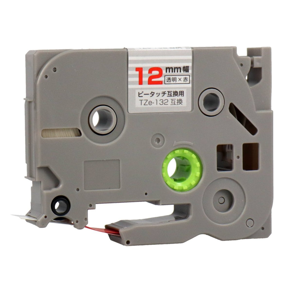 ブラザー TZe-132 ピータッチ用互換テープカートリッジ 透明×赤文字 12mm