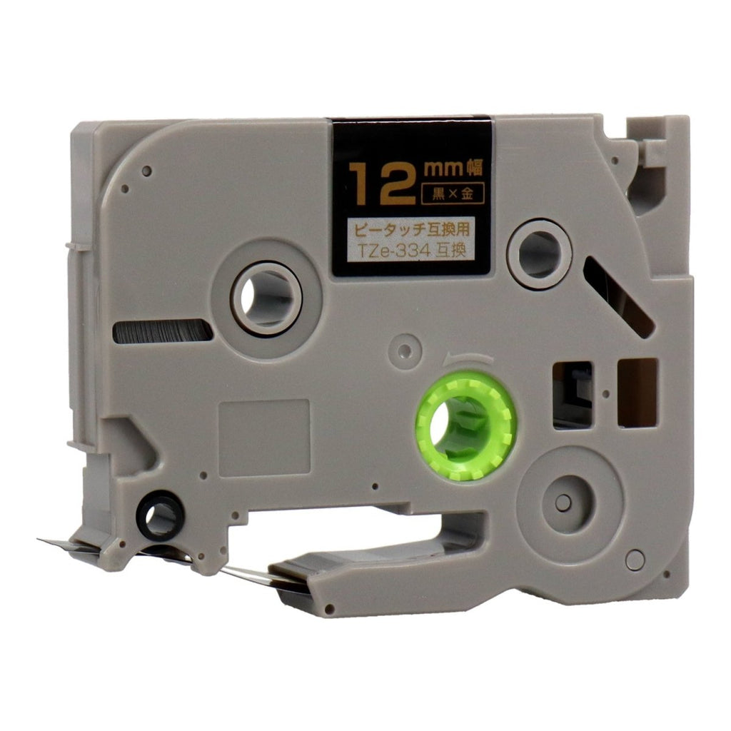 ブラザー TZe-334 ピータッチ用互換テープカートリッジ 黒×金文字 12mm