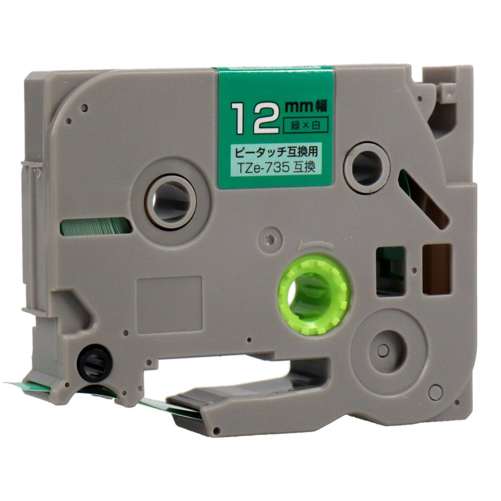 ブラザー ピータッチ用互換テープカートリッジ 緑×白文字 12mm