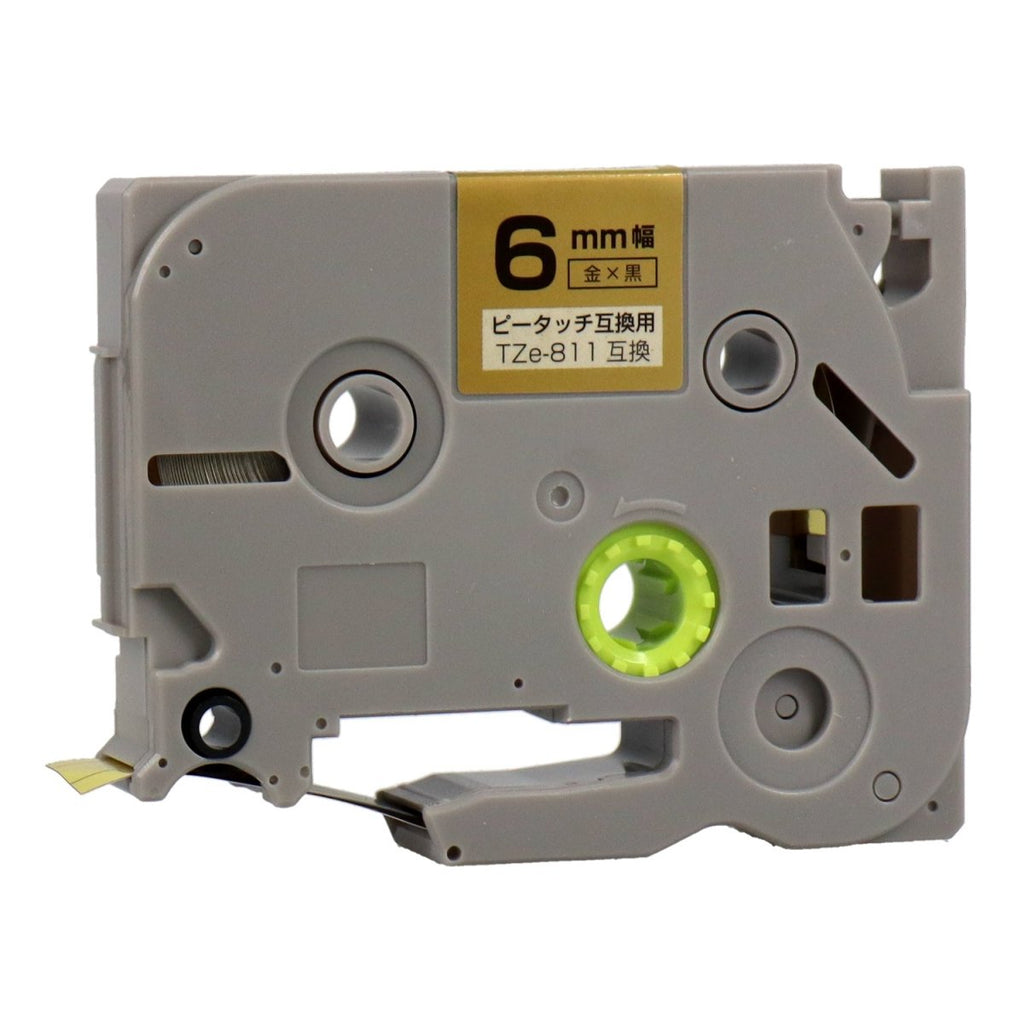 ブラザー ピータッチ用互換テープカートリッジ 金×黒文字 6mm