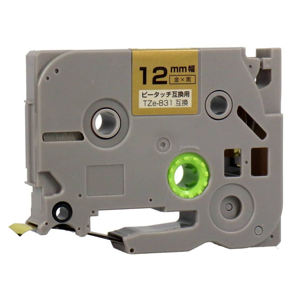 ブラザー ピータッチ用互換テープカートリッジ 金×黒文字 12mm