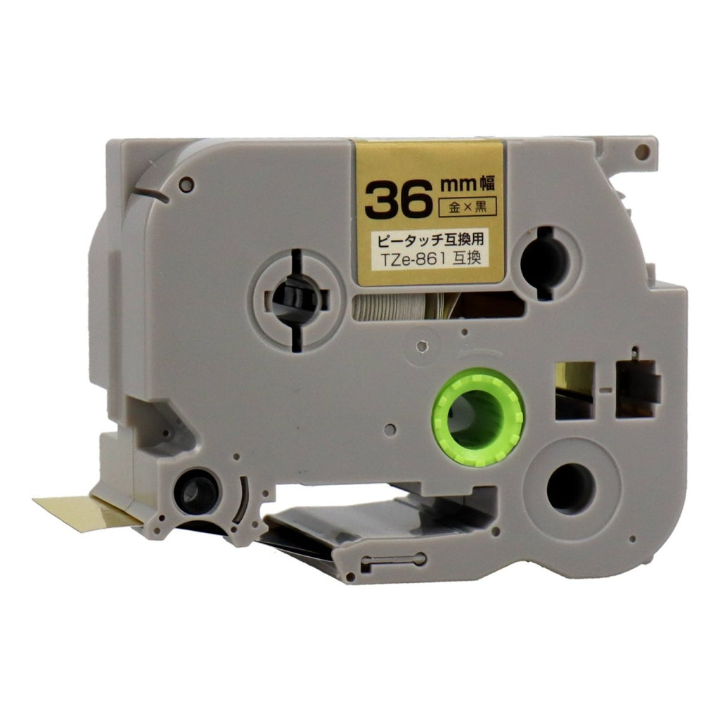 ブラザー ピータッチ用互換テープカートリッジ 金×黒文字 36mm