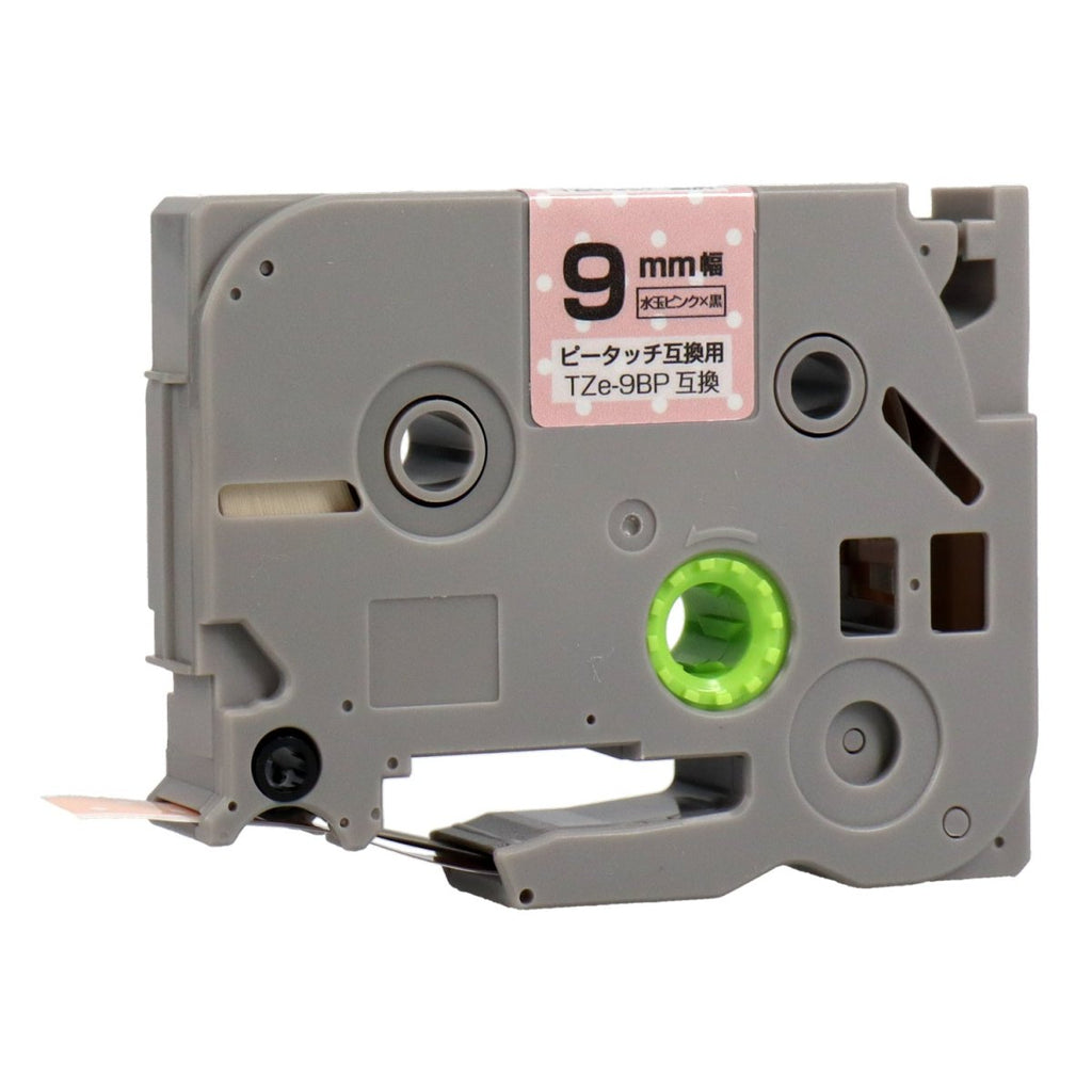 ブラザー用 ピータッチ用互換テープカートリッジ 水玉ピンク×黒文字 9mm