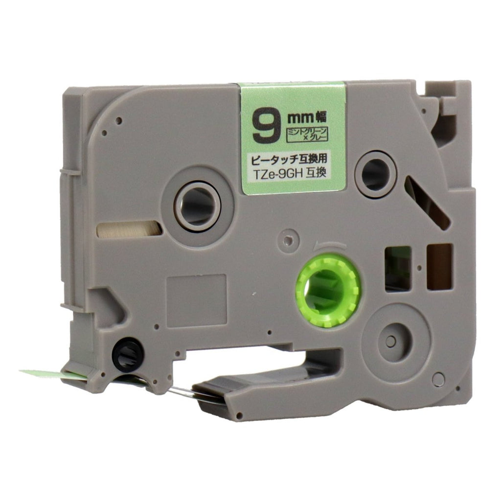 ブラザー用 ピータッチ用互換テープカートリッジ ミントグリーン×グレー文字 9mm