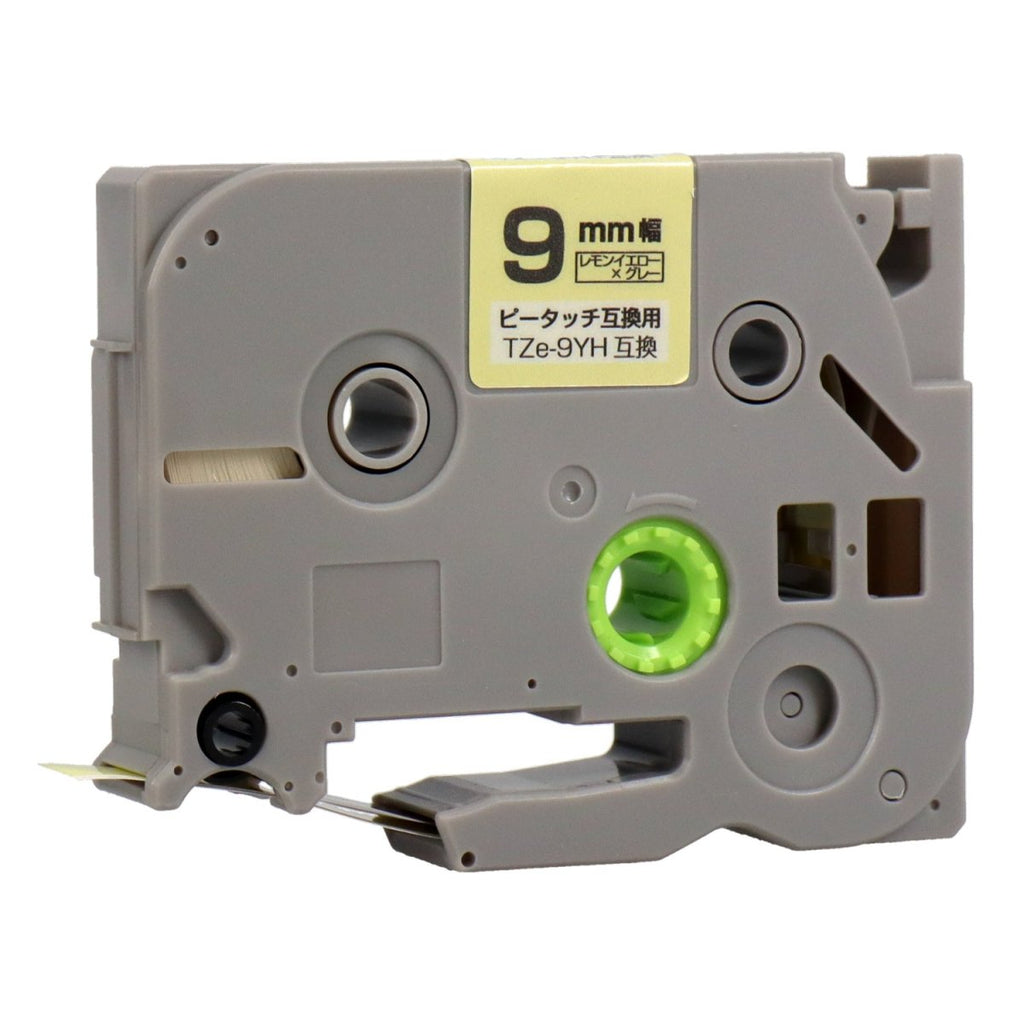 ブラザー用 ピータッチ用互換テープカートリッジ レモンイエロー×グレー文字 9mm