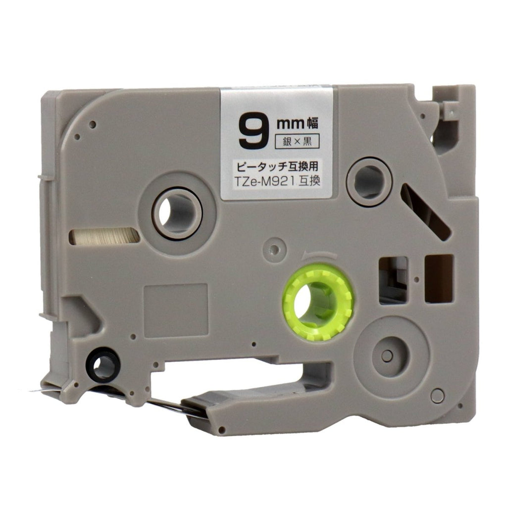 ブラザー ピータッチ用互換テープカートリッジ 銀×黒文字 9mm