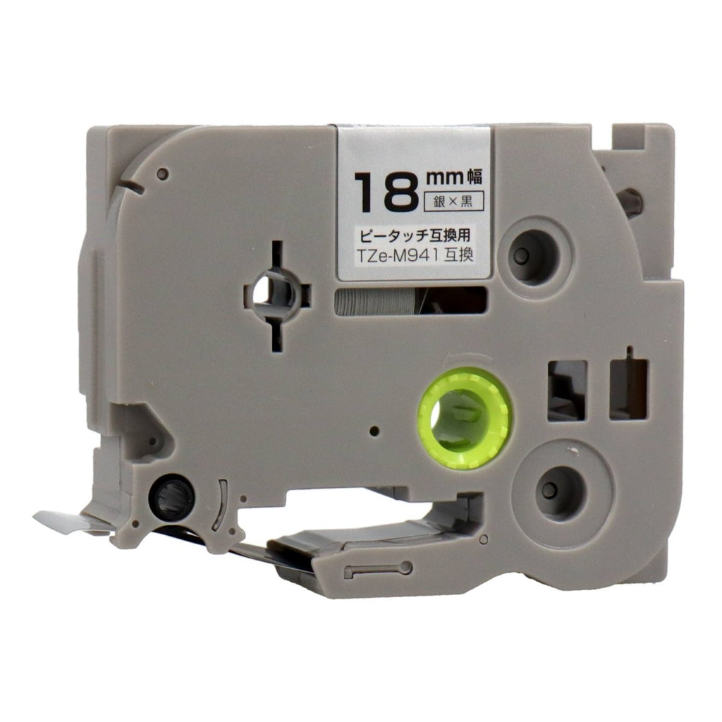 ブラザー TZe-M941 ピータッチ用互換テープカートリッジ 銀×黒文字 18mm