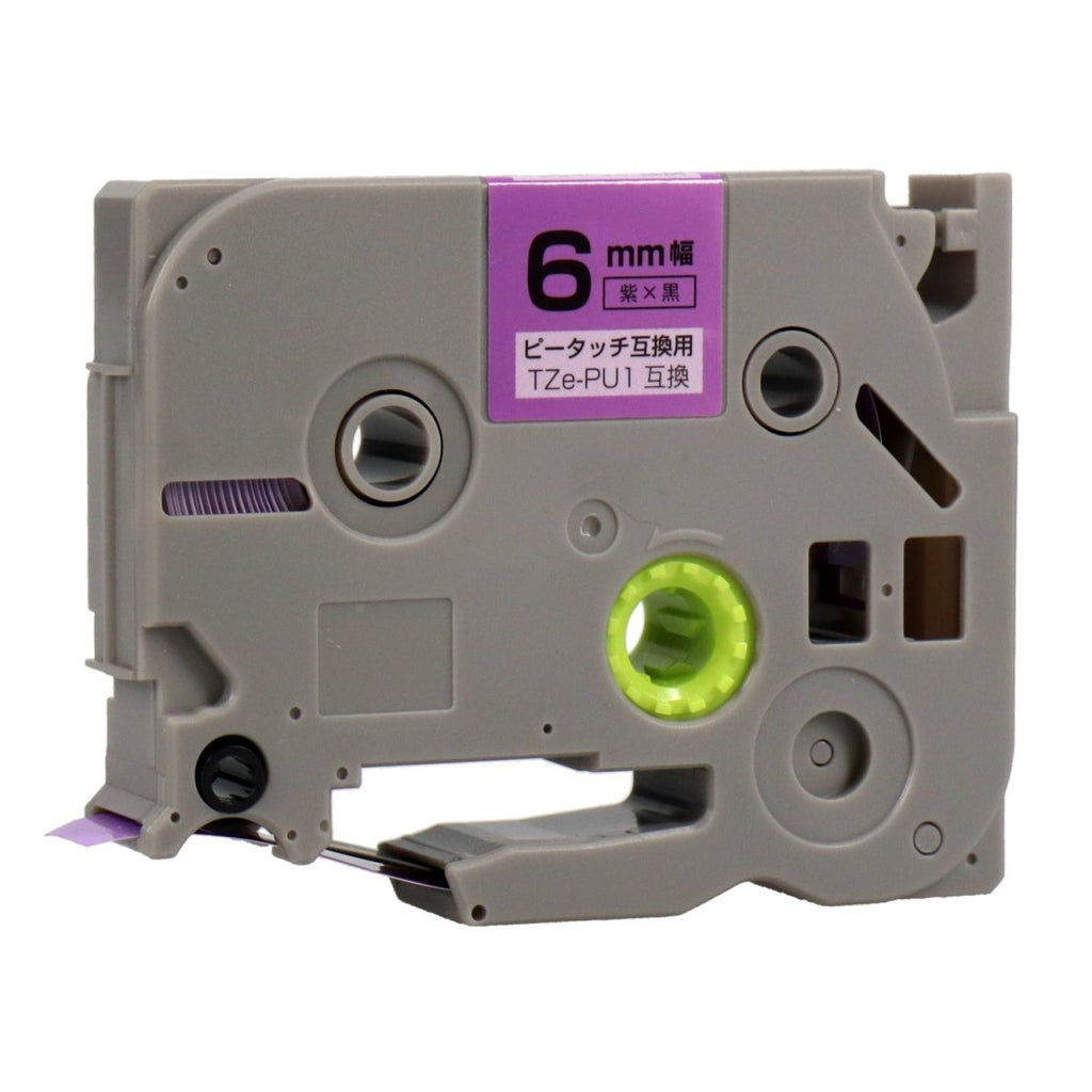 ブラザー ピータッチ用互換テープカートリッジ 紫×黒文字 6mm