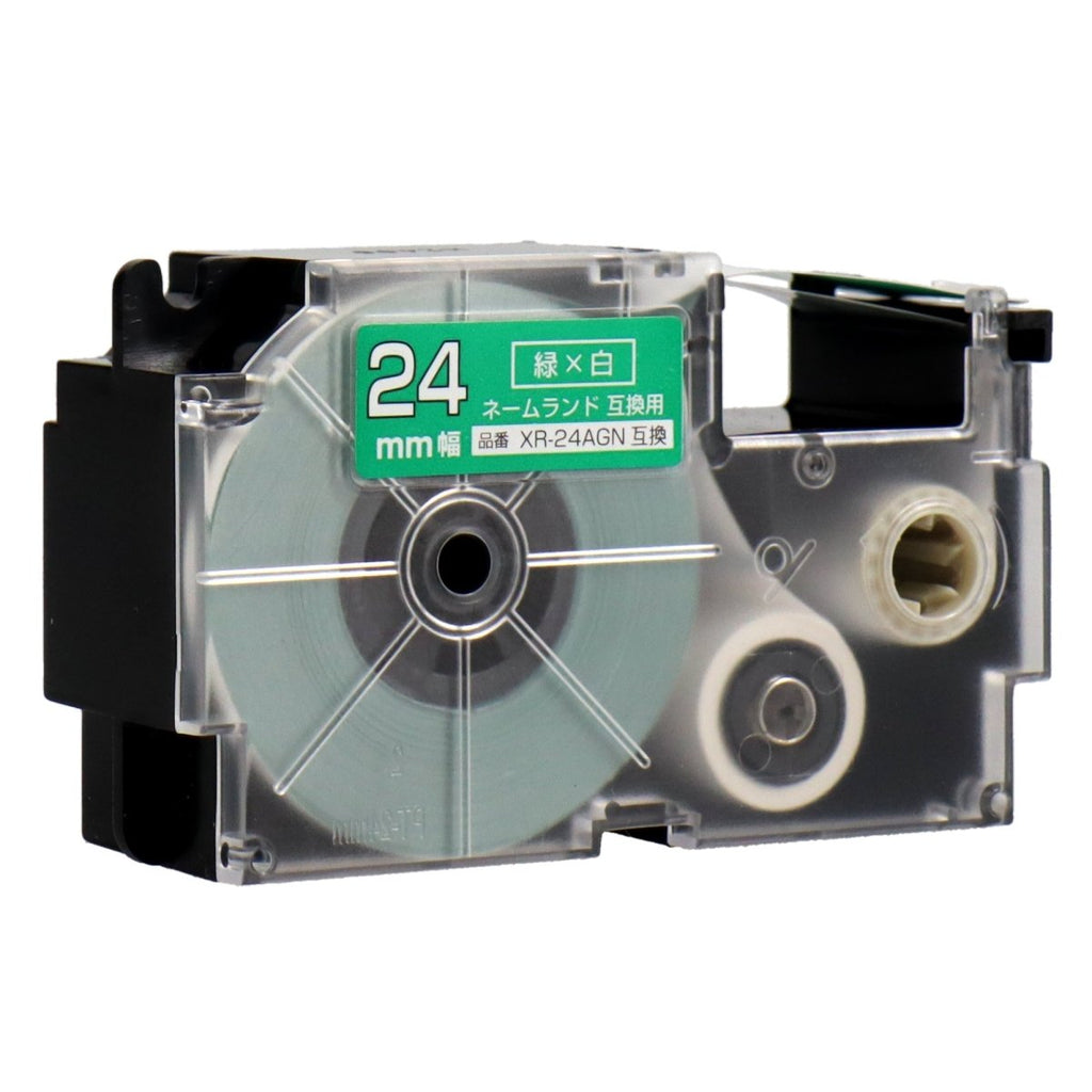 ネームランド用互換テープカートリッジ 緑×白文字 24mm