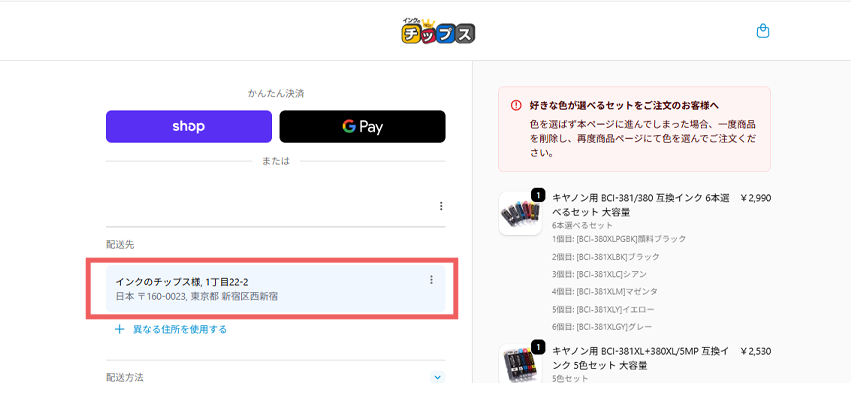 ※Shop Pay / Google Pay をご利用の場合はかんたん決済からご選択ください。
