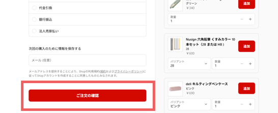 決済方法選択後「ご注文の確認」をクリックしてください。